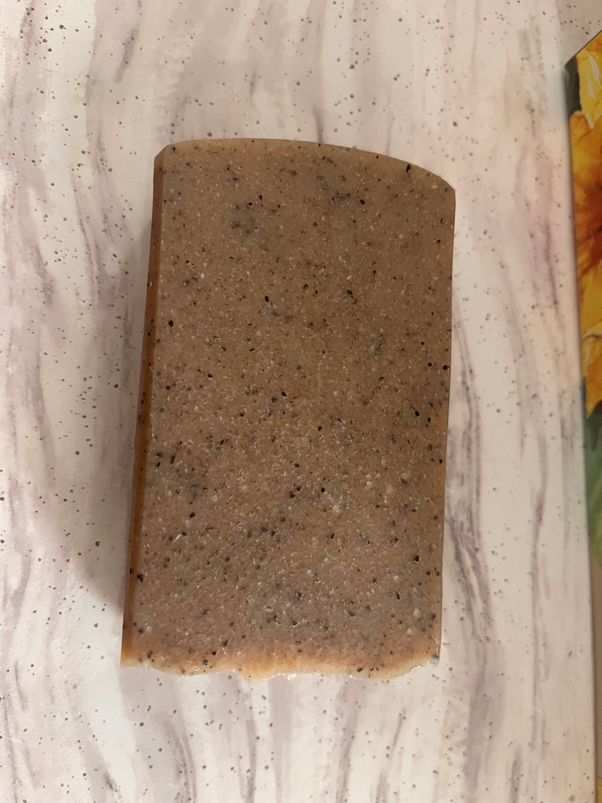 5. **Coffee Grounds**: These act as a natural exfoliant. The coarse texture of coffee grounds helps to scrub away dead skin, promoting smoother, brighter skin. Additionally, the grounds give the soap a slightly gritty feel, which enhances the exfoliating effect.
