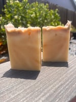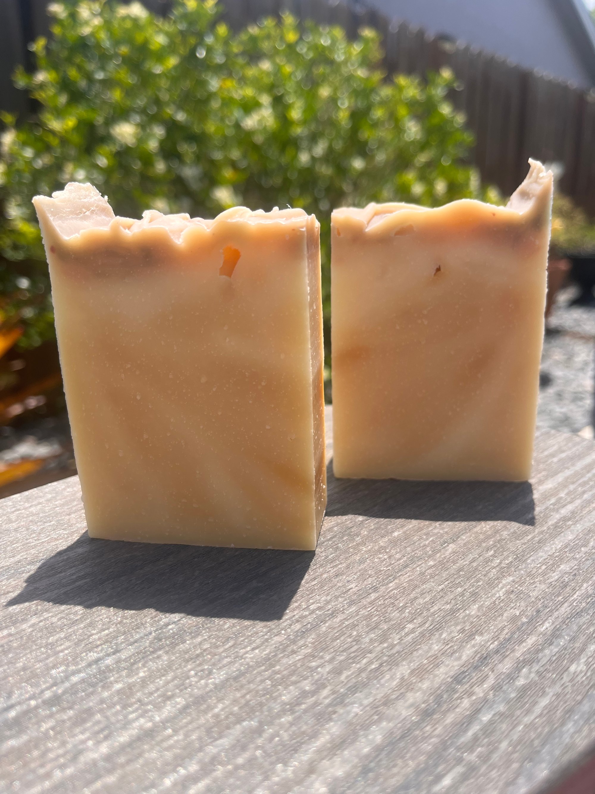 **Goat Milk**: Rich in lactic acid, vitamins, and minerals, goat milk lends a velvety, nourishing touch to the soap. It’s especially soothing for dry, sensitive, or eczema-prone skin, helping to gently exfoliate while softening and hydrating.